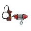 15 mtr. staalkabel, 1x haak, 1x trek kraan blok, bediening schakelaar met 2 meter bedieningskabel, montageplaat, bevestiging materiaal + gereedschap, 230 volt oplader, transport koffer en handleiding.