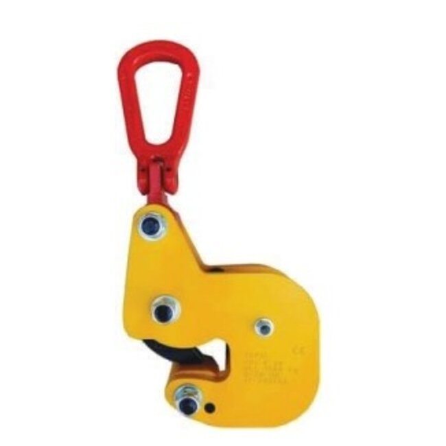 Hijsklem voor het hijsen van I of H balken of platen in een horizontale positie.
